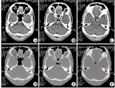 CT显示:左侧慢性中耳乳突炎(胆脂瘤型)